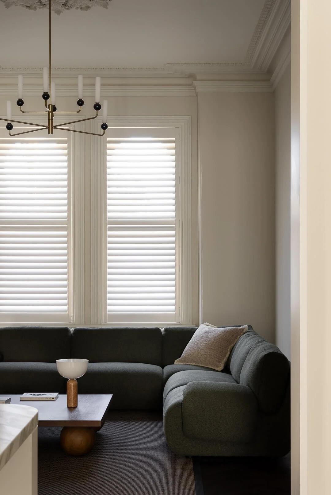 Central to the projects vision was a primary objective to celebrate the dwelling's origins and grandeur as a residential property. This resulted in a design process of minimal intervention, whereby the succession of original siloed rooms were carefully carved open to create heightened connectivity between spaces, whilst still remaining respectful to the original floorplan. Insertions and penetrations were only considered where necessary and never at the expense of the homes original character. This ‘soft touch’ approach resulted in a balanced distinction of old and new and a reimagining of key spaces and their final location.